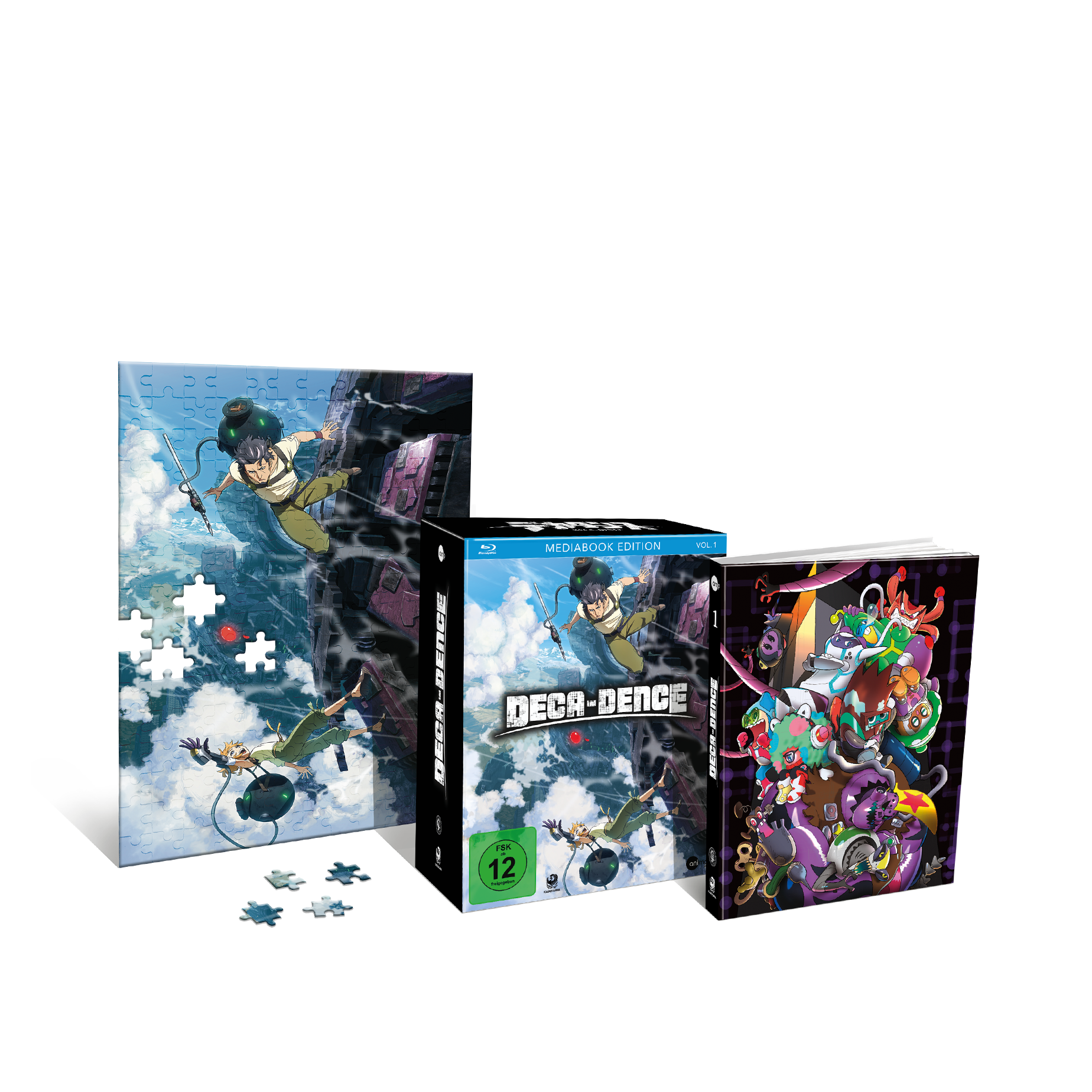 Die Limited Edition Vol. 1 enthält die Folgen 01-04 mit deutscher Synchronisation sowie japanischer Original-Tonspur mit deutschen Untertiteln und erscheint im hochwertigen Mediabook mit Sammelschuber, Booklet und einem exklusiven Puzzle.